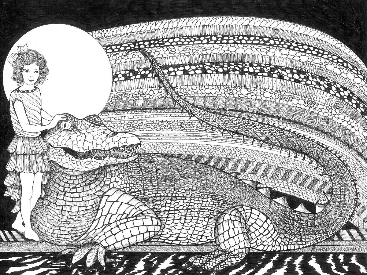 Tout en gardant le laisser-aller dans le geste spontané, les traits rapides, les représentations et l’ouverture vers l’inconscient, ses dessins à l’encre sont devenus plus élaborés. Elle a choisi de les réaliser dans un autre contexte que celui de la communication téléphonique et d’utiliser un stylo feutre qui ne permet pas de gommer ses erreurs mais nécessite de les intégrer dans l’harmonie du dessin final. Afin que son mental qui tourne en boucle et son attention soient captivés par une source d’information extérieure, elle réalise ses dessins tout en regardant un film choisi au hasard sur un programme TV. Dans ce moment là de création exutoire, ce temps de respiration addictif, thérapeutique et apaisant, elle transforme ses émotions en « dessins téléphoniques ».